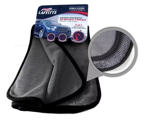 SECADO Y PULIDO - Máxima eficiencia Doble trama/Doble acción rápido secado y pulido perfecto. Tamaño ideal para el uso intensivo y una cómoda manipulación, permitiendo la limpieza y repaso de múltiples superficies del vehículo Con mayor porcentaje de poliamida, y terminaciones reforzadas en todo su contorno para prolongar su vida útil. No deja marcas, vetas ni pelusas. Medidas: 40 x 60 cm.